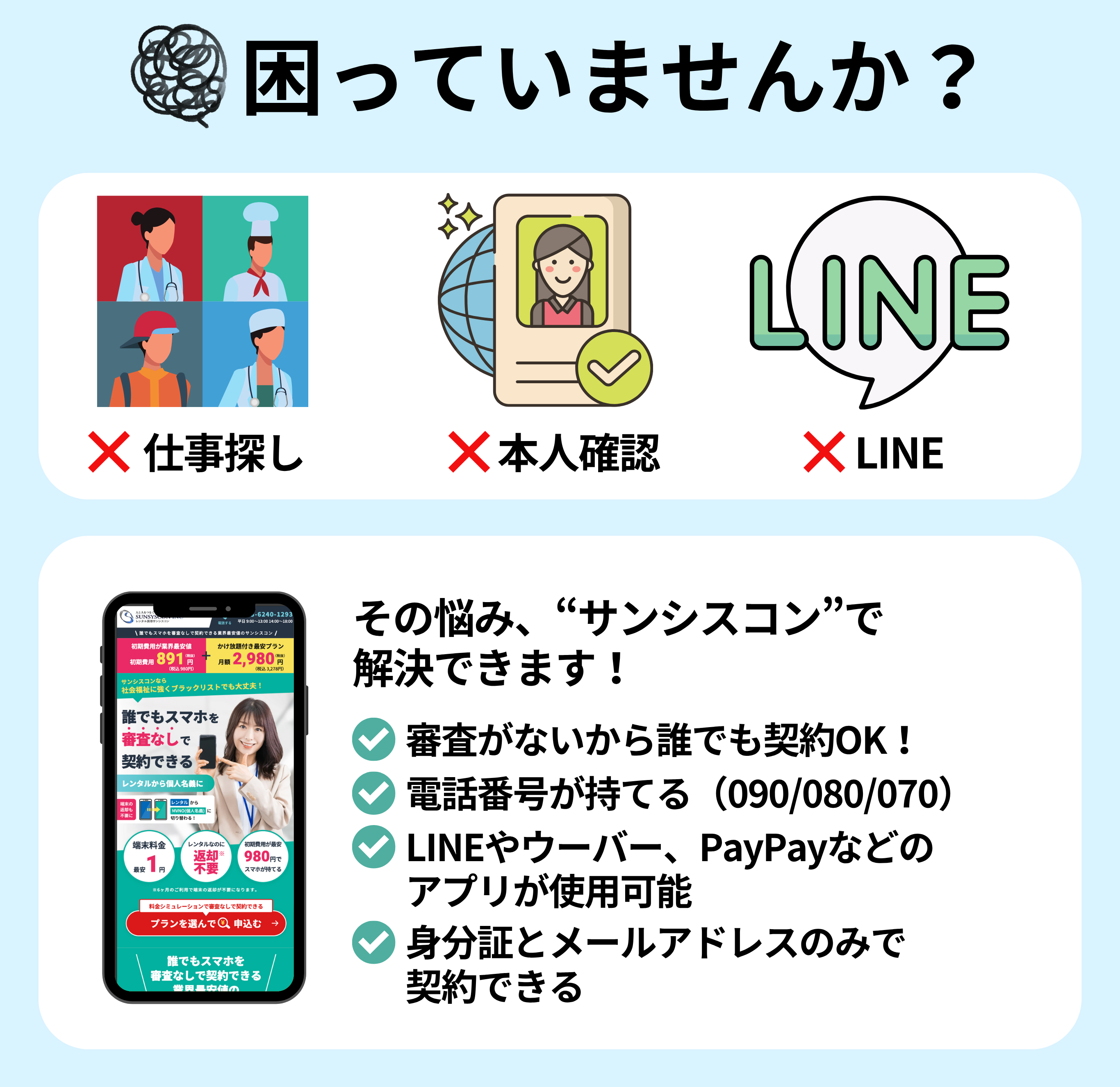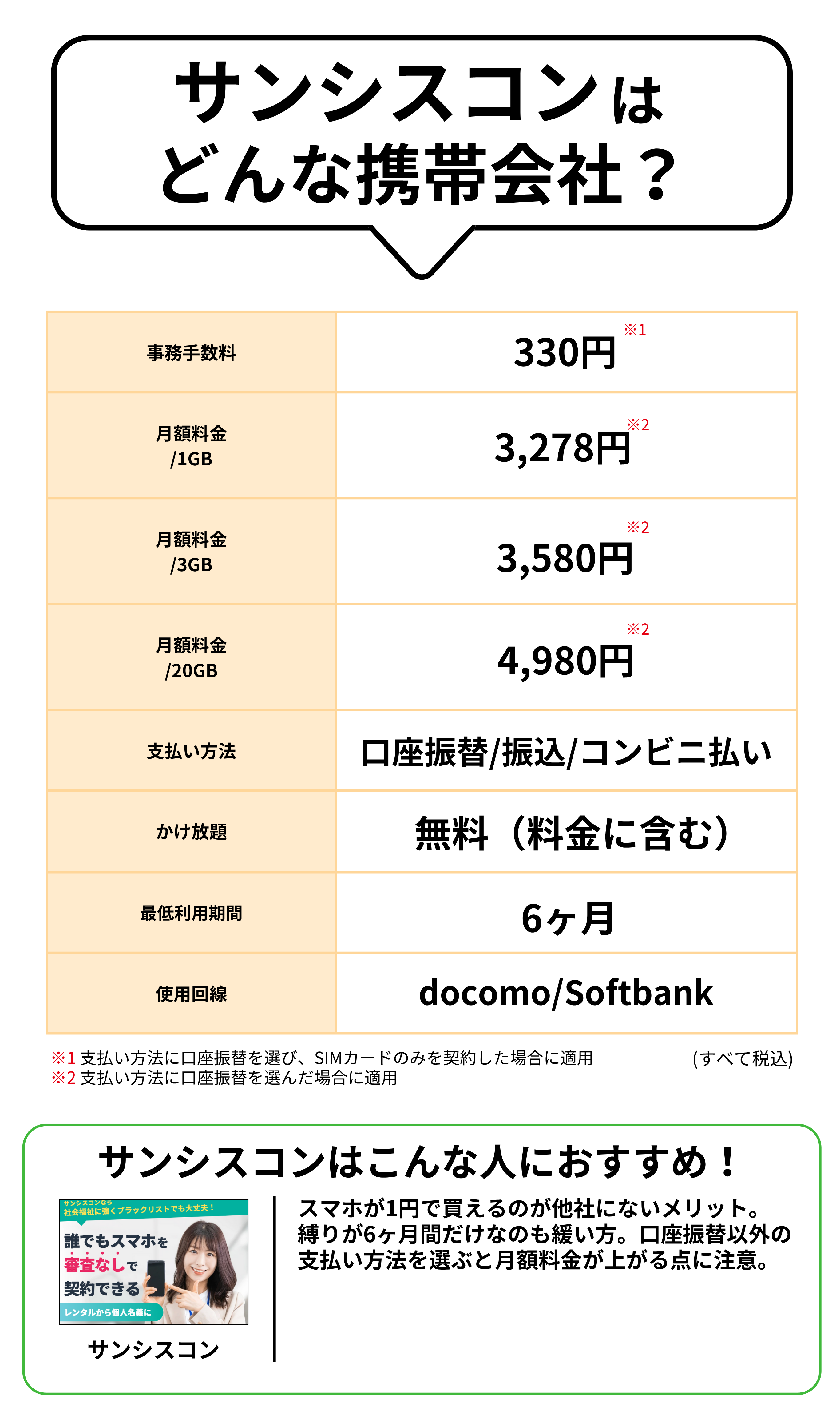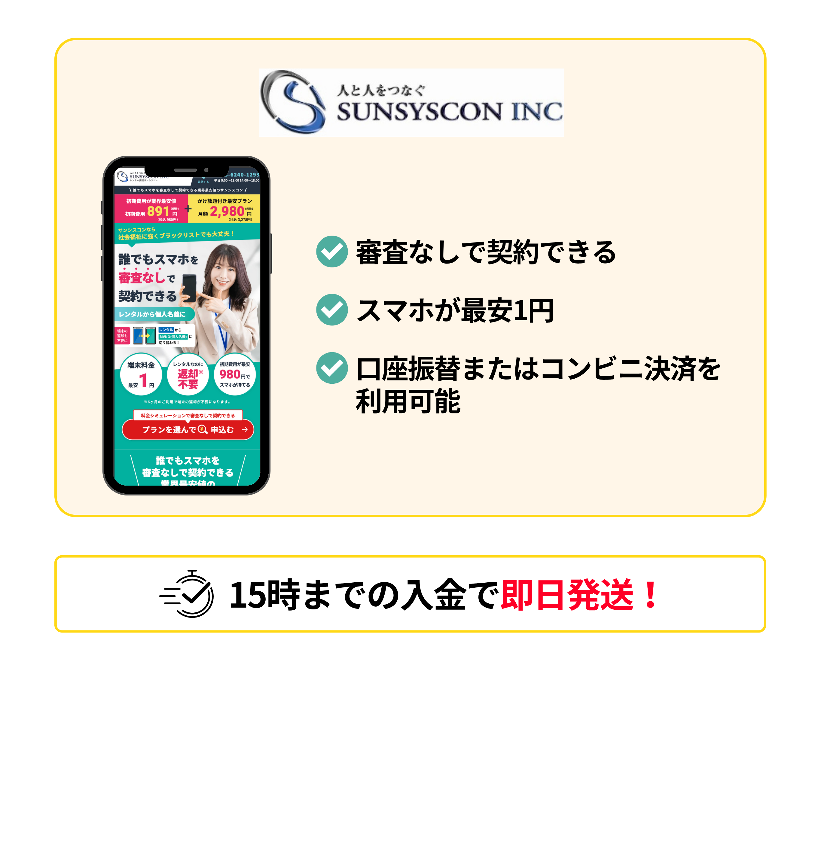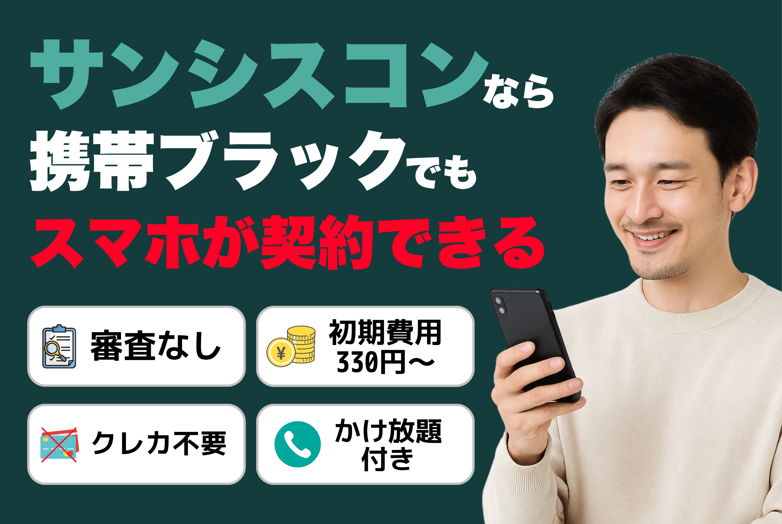 携帯ブラックでも契約できる『サンシスコン』|スマホ1円・クレカ不要の審査なし格安SIM